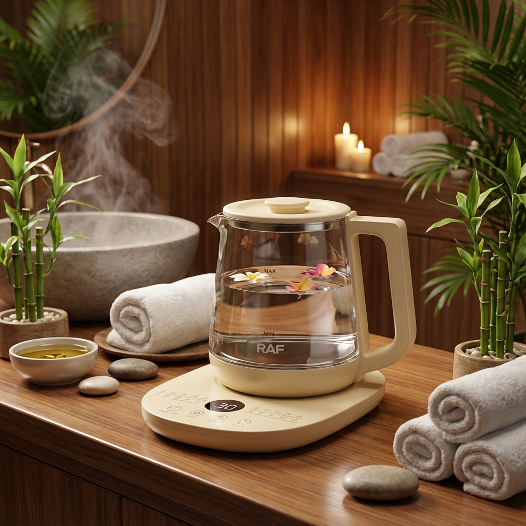 المادة: زجاج حراري + قاعدة ذكية