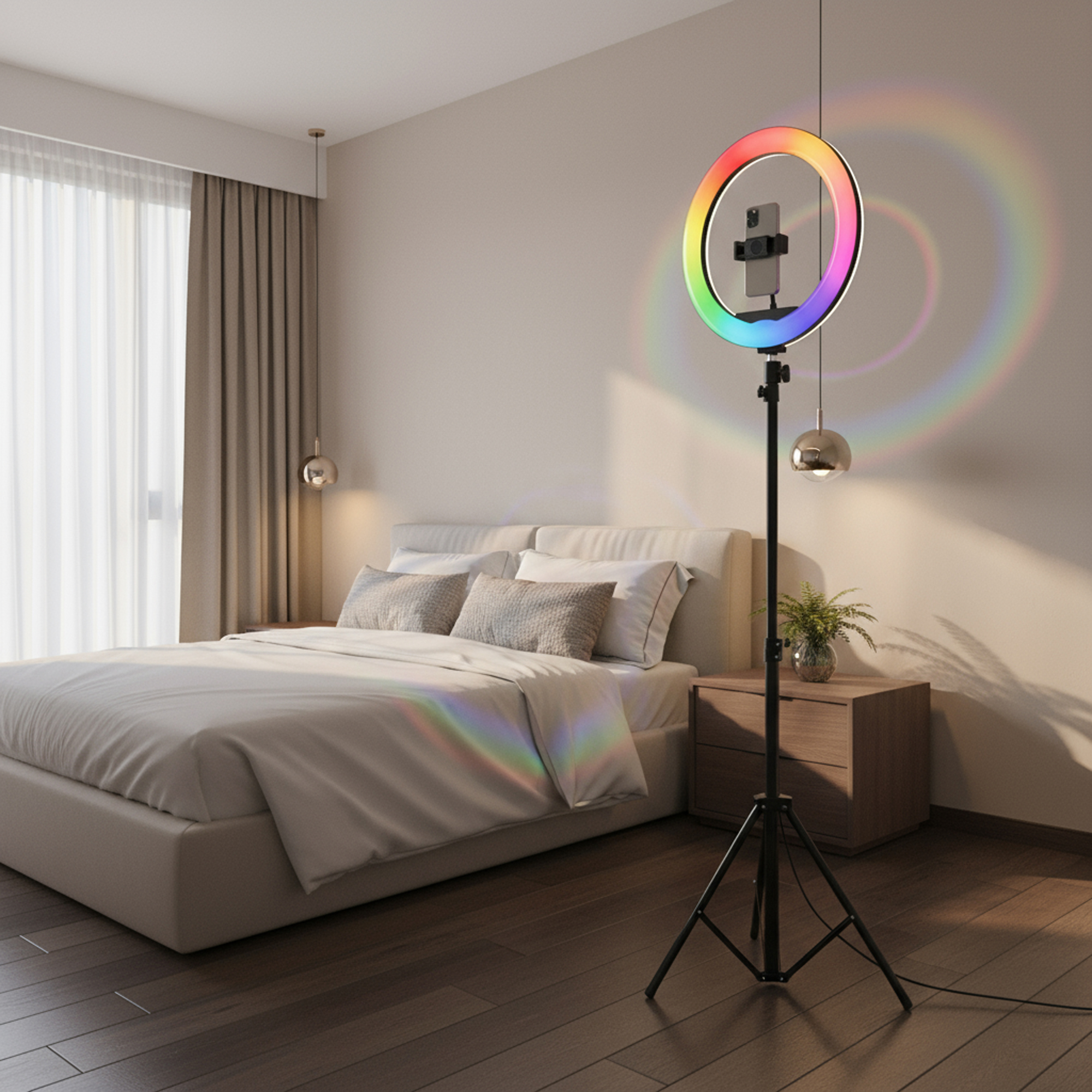 حلقة بإضاءة متوازنة تقلل الظلال وتعطي وضوح عالي