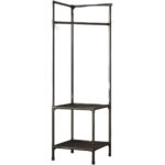 يحتوي على رفين وقضبان لتعليق الملابس.