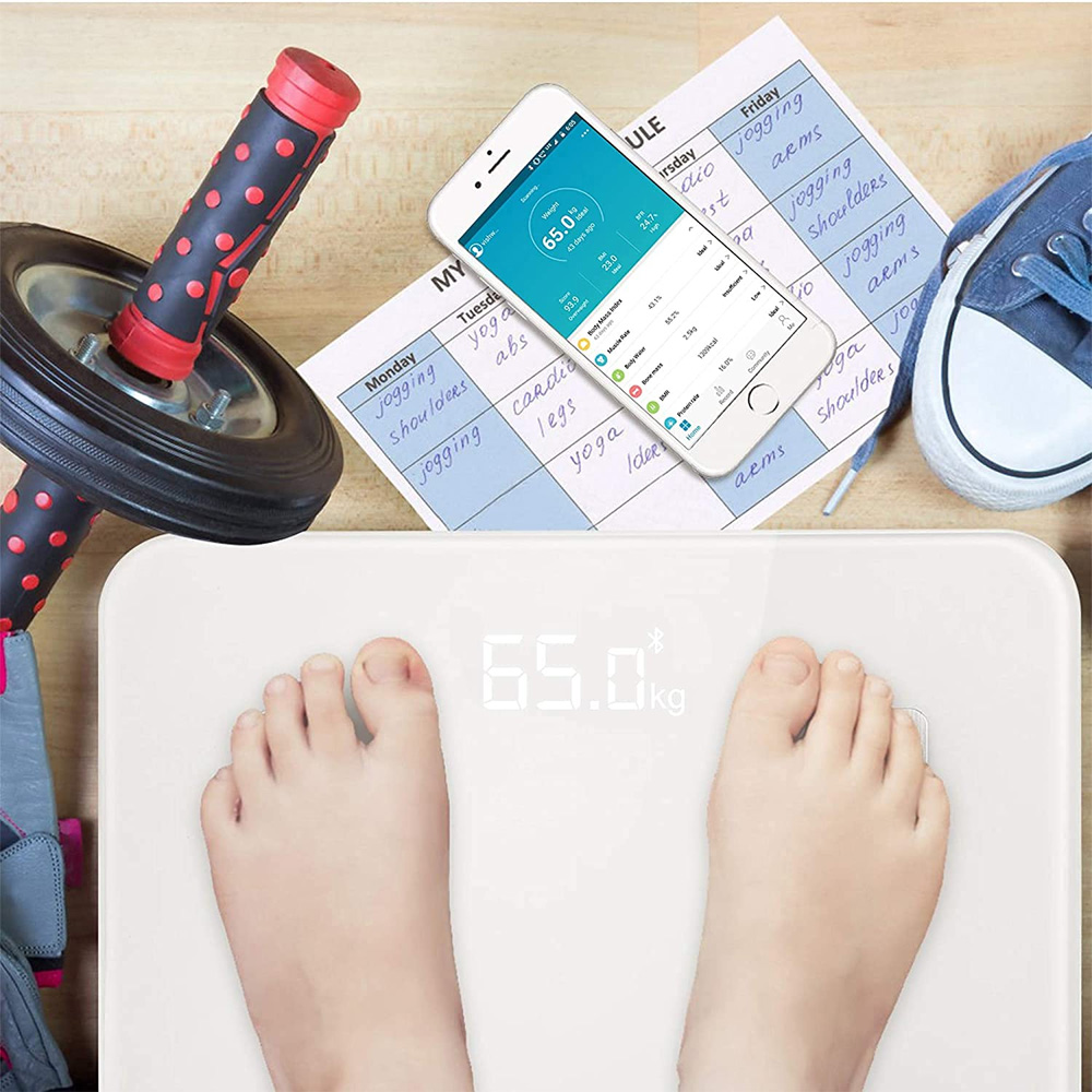مقاوم للكسر، الميزان من الزجاج المقوى، ومزود بـ 4 مستشعرات حساسة ودقيقة لقياس دقيق.